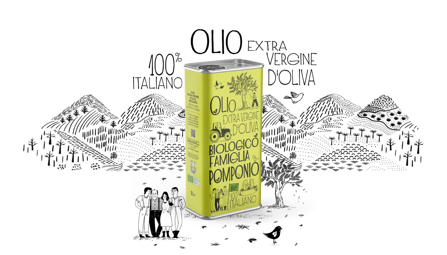 Olio Extra Vergine di Oliva Biologico – Estrazione a Freddo – Famiglia Pomponio – Latta 5000ml